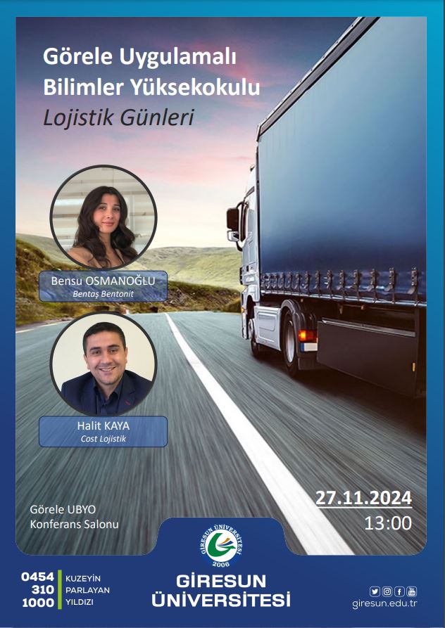 Yüksekokulumuz Lojistik Yönetimi Bölümümüz tarafından “Lojistik Günleri” konulu etkinlik gerçekleştirilmiştir. Etkinliğimizde, Bentaş Bentonit İhracaat Operasyon Uzmanı Bensu OSMANOĞLU ve Cost Lojistik İş Geliştirme Müdürü Halit KAYA konuşmacı olarak yer almıştır. Lojistik Yönetimi Bölüm Başkanı Doç. Dr. Emrullah METE'nin ve Dr. Öğr. Üyesi Emre İPEKÇİ'nin konuşmalarıyla başlayan etkinlik, Bensu OSMANOĞLU'nun ‘Lojistik Operasyon Süreçleri’ ve Halit KAYA'nın ‘Mesleki Kariyer Planlama’ konulu konuşmalarıyla devam etmiştir. Etkinliğin son bölümünde konuşmacılar genel olarak mesleki deneyimlerini aktarmış ve Soru-Cevap kısmına geçilmiştir. Daha sonra Doç. Dr. Emrullah METE'nin ve Dr. Öğr. Üyesi Ferhat İSPİROĞLU'nun konuşmacılarımıza plaketlerini takdim etmelerinin ardından etkinliğimiz sona ermiştir.