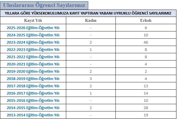 | 3- | SCI, SCI-E/ESCI/SSCI/AHCI Scopus indeksli dergilerde yayınlanan uluslararası iş birliği ile yapılmış makale sayısı (yıllık) | 0 |